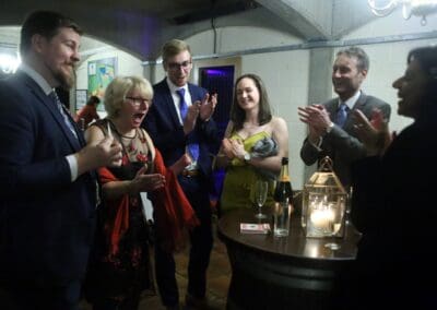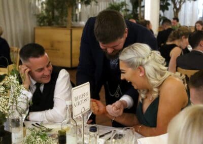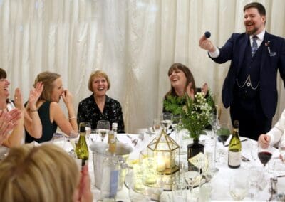 Alongside expert hosting, I introduce interactive entertainment during your wedding breakfast, including lively games and engaging moments that bring laughter, connection, and unforgettable fun for all your guests to enjoy.